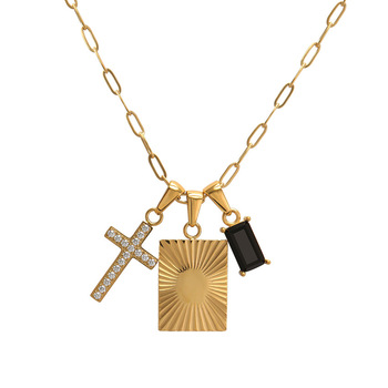 Collana pendente in acciaio al titanio con combinazione quadrata di zirconi neri raffinati collana impermeabile in acciaio inossidabile gioielli