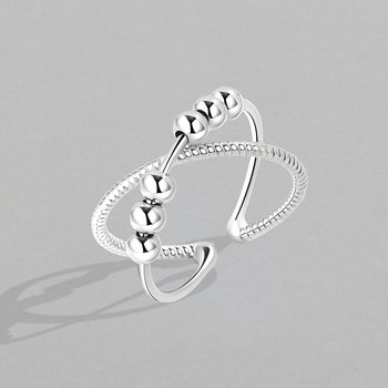 2023新しいシルバーカラーフィジェットビーズ不安スピナーリング女性用アンチストレス調整リング