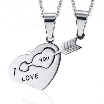 Metal Jewelry Factory Trendy Stainless Steel Broken Lover Couple Heart Pendant Locket Plain CZ Stone Necklace LVP007