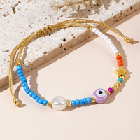 Popular Turkish Evil Eye Design Women's Simple Jewelry Candy Color Seed Beads Bangle Charms Imitation Round Pearl Bracelet